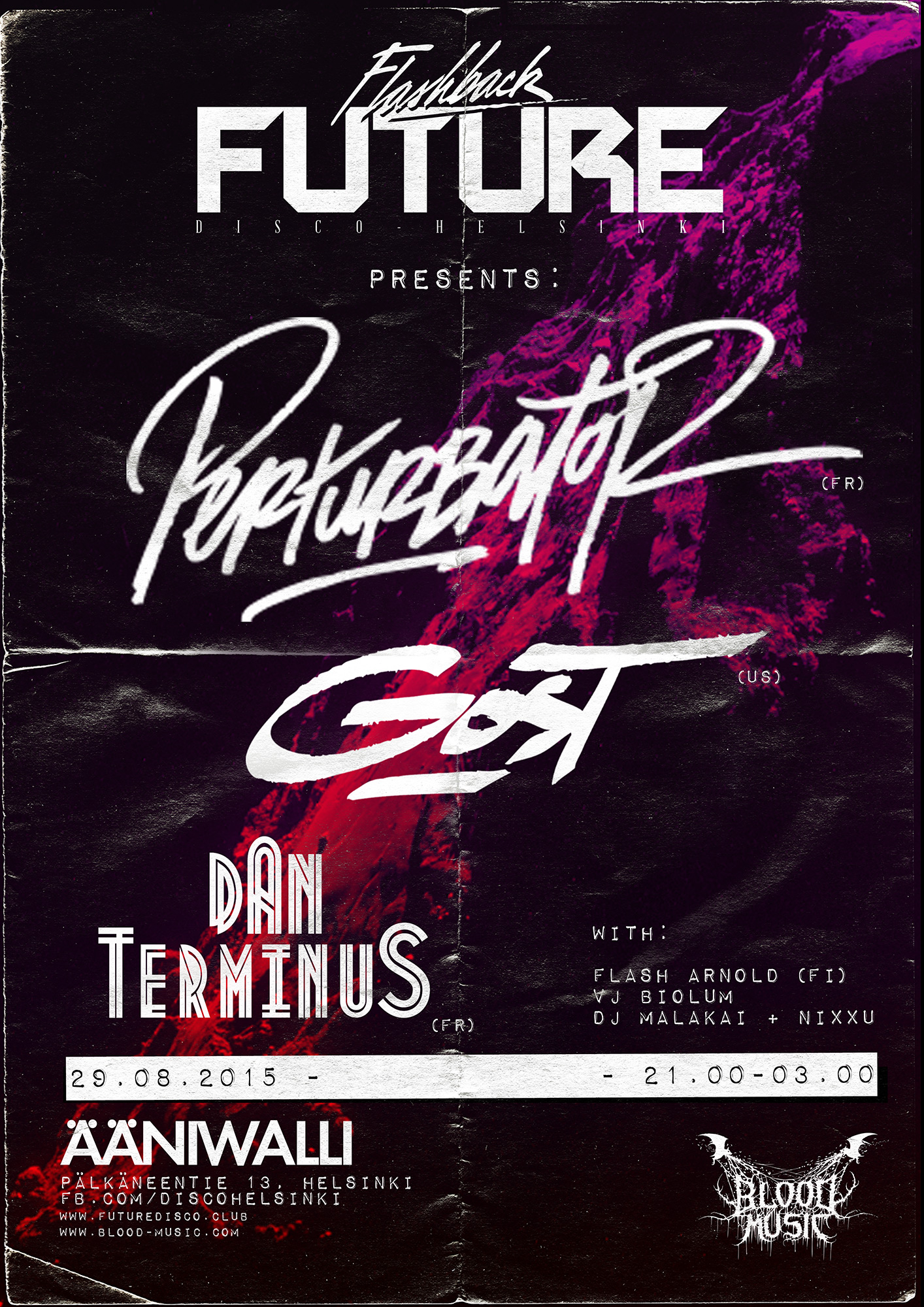 Flashback Future - Perturbator & Co. Helsinki 21:00 - 03:00 @ Ääniwalli disco, hard, industrial, oldskool