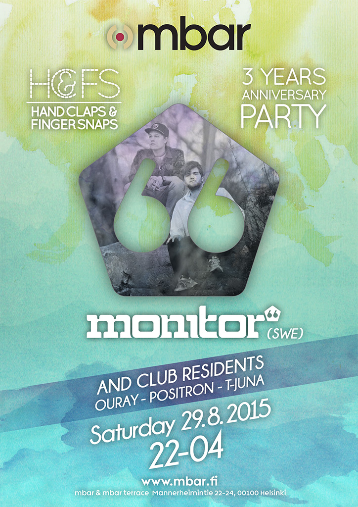 Hand Claps & Finger Snaps 3 Years birthday party w/ Monitor 66 (SWE) Helsinki 22:00 - 04:00 @ mbar Terassi disco, house, oldskool